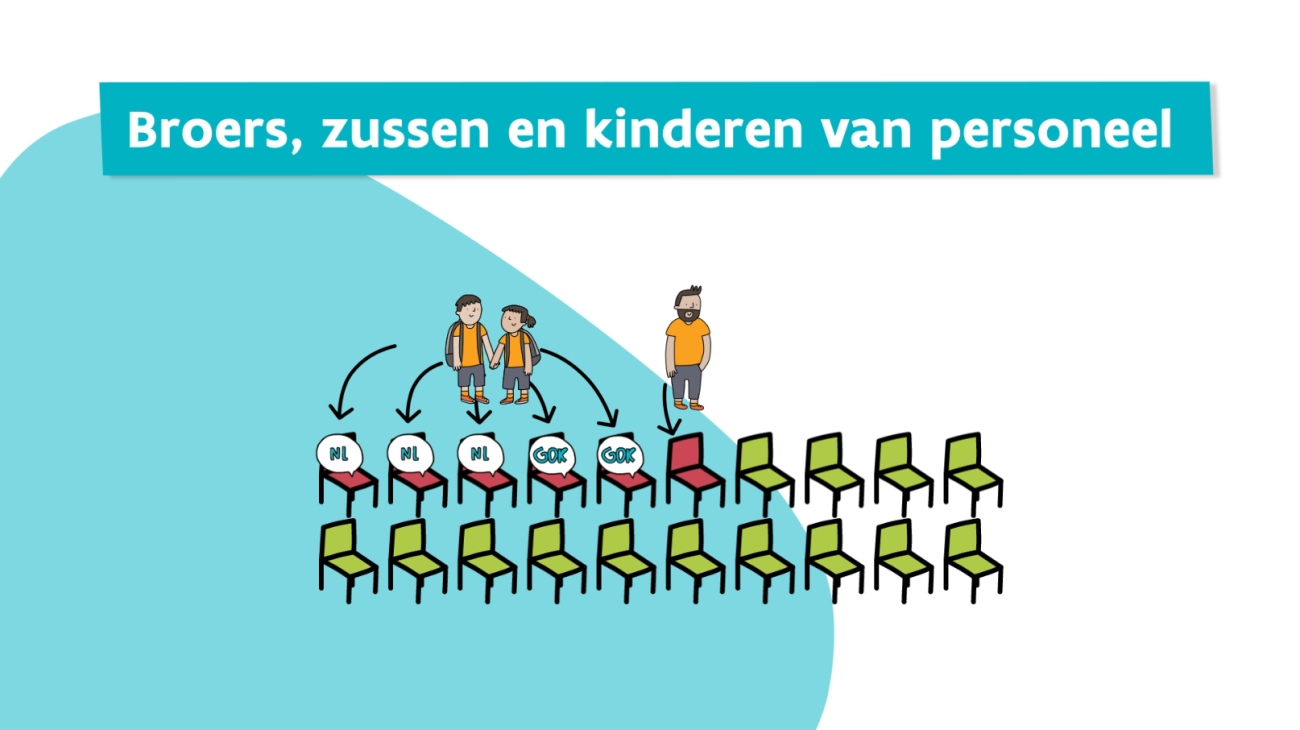 - Eerst krijgen de broers en zussen van leerlingen en de kinderen van het personeel een plek.