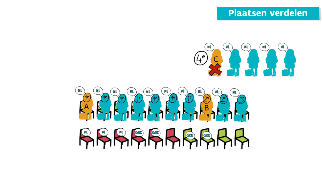 Nadien komt de voorrangsgroep GOK, waarvoor er nog 2 plaatsen zijn. De verdeling gebeurt op dezelfde manier.
