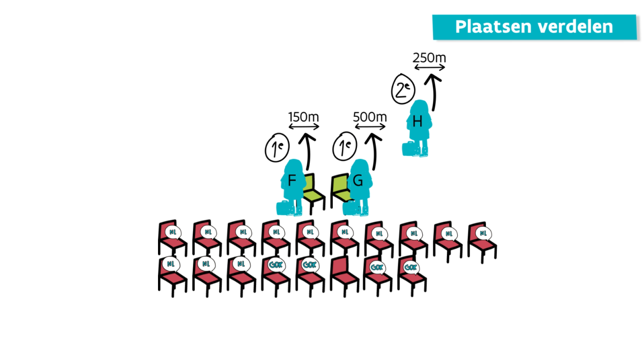 - De plaats gaat dus eerst naar leerling E.